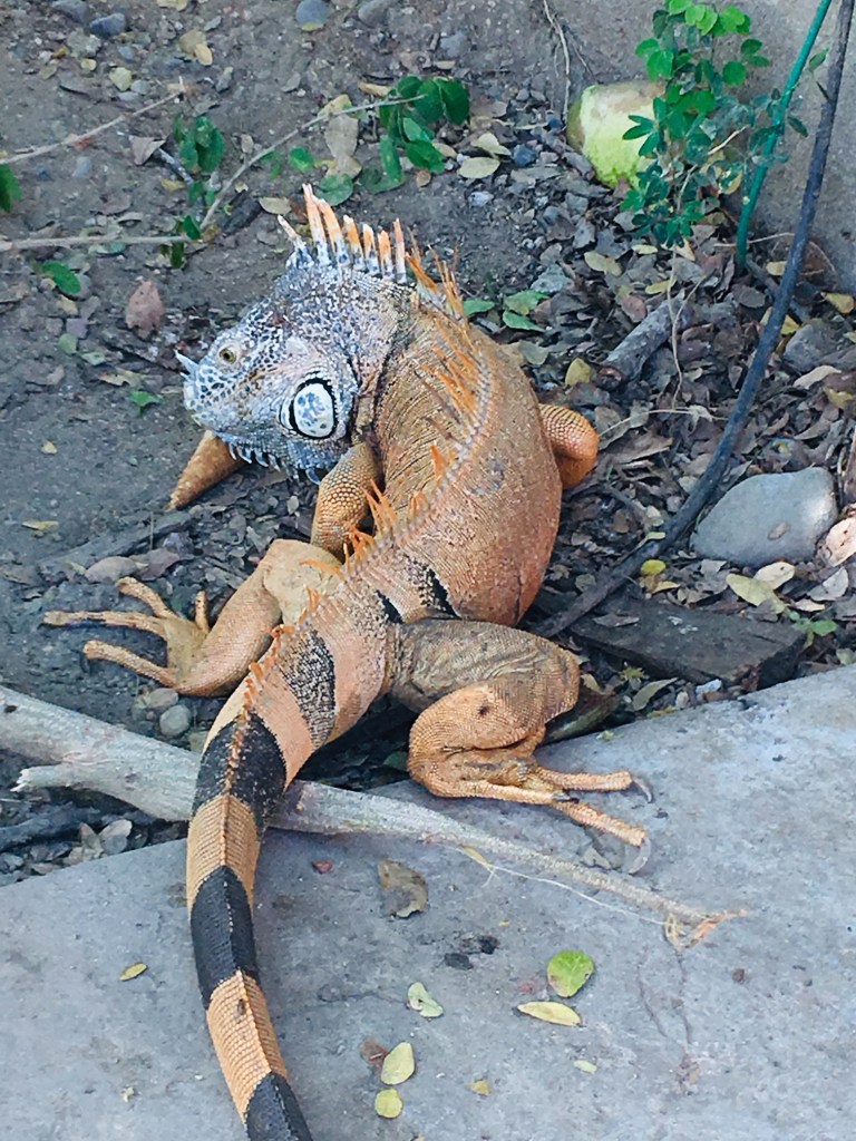 Our place was Casa Virgilio located in a residential neighborhood and run by a Cuban from Havana. What a paradise and at 14 pesos to the Canadian dollar, you can stay at this place for only $350 a week including waking up to a luscious breakfast consisting of Mexican frijoles, eggs, quesadillas, rice, papaya, melon and pineapple juices. We filled our bellies and partook in the empty pool and hot tub as we relished the sounds of birds including egrets, herons and humming birds. Under the palapas, we could see gargantuas orange iguanas with black stripes slithering down the banks of the river.