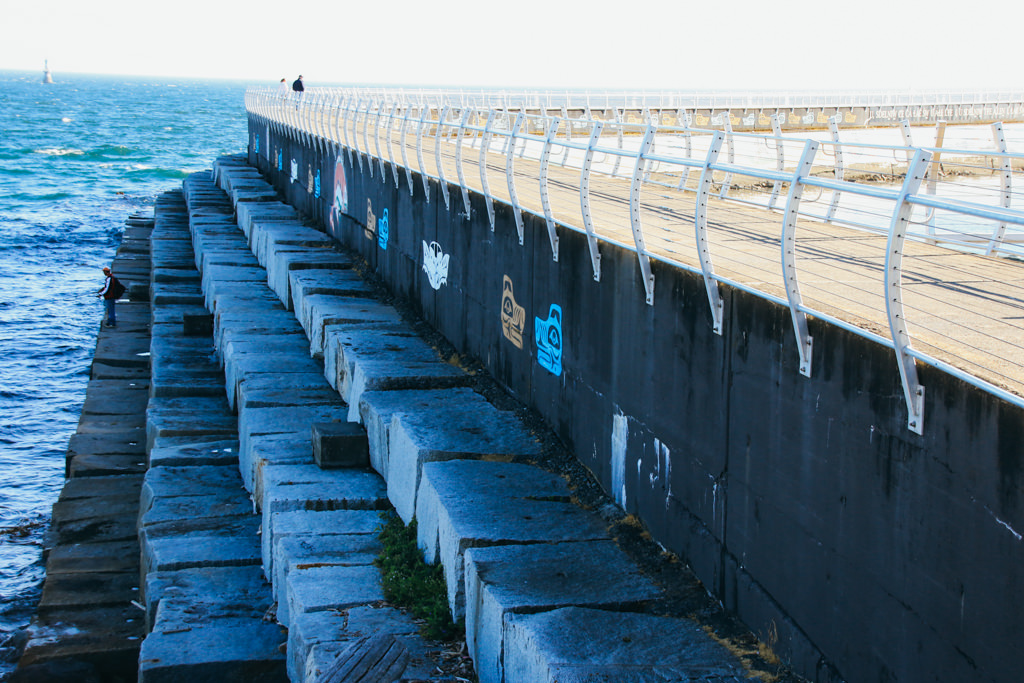 From Dallas Road, walk along the path and out onto the breakwater. It was only in 2013 that railings were installed along the route as the sides used to have nothing between the path and the cement blocks below. Continue walking along the route, taking moments to look back in both directions at the scenic harbour views.